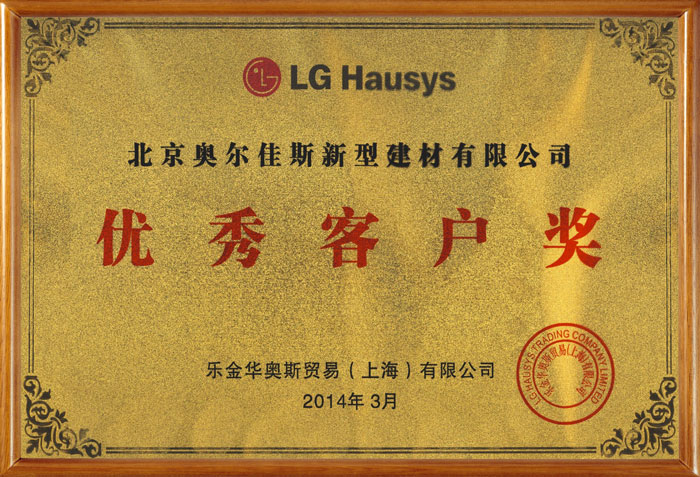 北京奧爾佳斯新型建材有限公司獲得韓國LG Hausys總部頒發(fā)的“優(yōu)秀客戶獎”。 ...